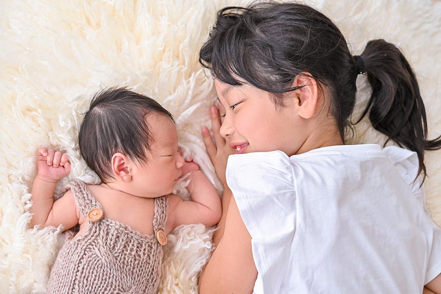 見開きページに等身大の赤ちゃんの写真が入ったデザインアルバム付きプラン。ページをめくるたびに生まれた時の小ささやぬくもり、喜びや感謝の気持ちを思い出せると評判です。30カット/デジ3カット/デザインアルバム/プリントクーポン5000円付き